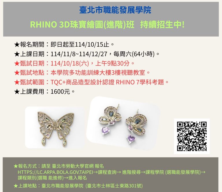 台北市職能發展學院  進階3D珠寶設計課程  開課訊息