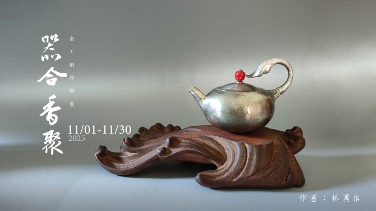 《器合香聚》以茶與香為題,探索「器」在金屬工藝裡的藝術表現。透過各式器形、技法與設計的語彙,展現現代金工與生活美學的融合。展出的作家們以各自獨有的金工語彙,創作出兼具美感與特色的作品:有人鍛金成柔光,靜中見韻;有人以香器承載時間的氣息;也有人以心為度,讓器物映照出生活的寧和與安然。