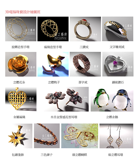 Tweet 05 2025.05 3D珠寶繪圖 基礎班 開班訊息 分類:金工教學 3D珠寶繪圖 基礎班 開班訊息 ●2026年1月11日(星期日),共七堂課 ●上課時間:下午一點至六點 (可選擇實體上課或線上上課) ●3D珠寶繪圖設計課程介紹: https://metalart.tw/course/jewelry-design-3d/ 課程主要針對3D珠寶作品創作,3D珠寶建模,Rhino建模軟體為主,外掛RhinoGold 6 珠寶設計軟體,可針對學員設計方向,提供最佳建模指令指導,並提供3D列印重點、模型鑄造為金屬等重要知識,幫助從事3D珠寶繪圖設計領域朋友們,提升專業技術。 Rhino7或Rhino8 3D軟體,SubD、外掛RhinoGold 6 珠寶設計軟體、3D珠寶設計繪圖、3D戒飾、3D墬飾、鑽石鑲法、3D雕刻、彩現、3D列印輸出。 ●工作室備有電腦可使用,無需另外付費。 ●工作室有3D列印機器,可以免費列印二件作品,可鑄造成金屬的類蠟材料,無需另外付費。